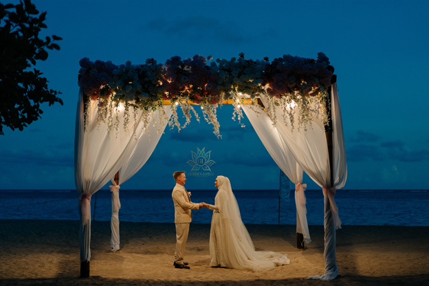 - Beach wedding bisa lebih fleksibel, tapi tetap memerlukan izin dari otoritas setempat, terutama jika dilakukan di area publik. Biaya dekorasi bisa jadi lebih tinggi karena harus membangun semuanya dari nol.