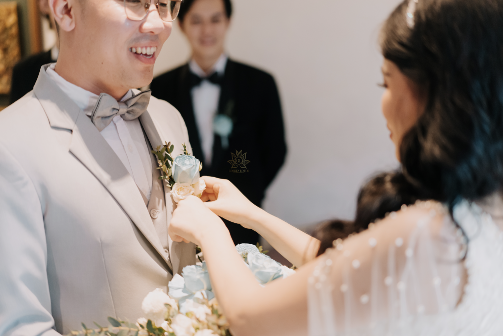 Sering kali, yang membuat penampilan groom istimewa adalah detail kecil yang penuh makna. Pocket square dengan warna kontras bisa memberi sentuhan berani tanpa perlu tampil mencolok. Boutonniere dari bunga favorit pasanganmu atau tanaman lokal bisa memperkuat koneksi emosional sekaligus selaras dengan tema dekorasi. Aksesori seperti ini memberi kesan bahwa kamu memperhatikan detail dan menghargai momen.