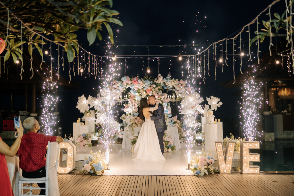 Kembang api memberikan elemen kejutan dan kemewahan. Letupan cahaya dan warna yang menyala di langit akan memikat perhatian setiap tamu undangan dan menciptakan efek visual yang mengesankan. Bagi pasangan pengantin, momen ini akan terasa seperti berada dalam adegan romantis di film—di mana seluruh dunia tampak berhenti sejenak menyaksikan cinta mereka bersinar.