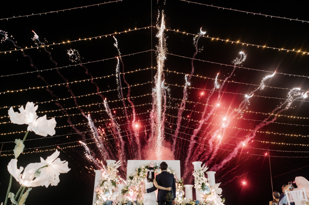 - Usai Mengucap Janji Suci: Letupan kembang api sesaat setelah kata “sah” atau “I do” diucapkan akan menjadi simbolik yang sangat kuat.