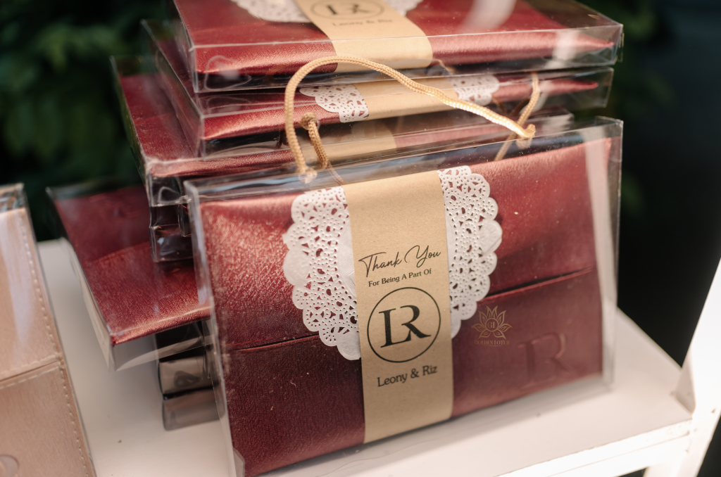 Tak berhenti di situ, tema maroon juga bisa diwujudkan dalam souvenir pernikahan, seperti kotak permen kecil berbalut kain maroon, lilin aromaterapi dengan kemasan senada, atau gantungan kunci elegan. Buku tamu, photobooth, dan bahkan stiker nama di kursi tamu dapat didesain dengan aksen maroon. Jika Anda memiliki anggaran lebih, kue pernikahan bertingkat dengan sentuhan maroon—baik pada bunga hiasan maupun ornamen icing—akan menjadi penutup visual yang sempurna di hari spesial Anda.
