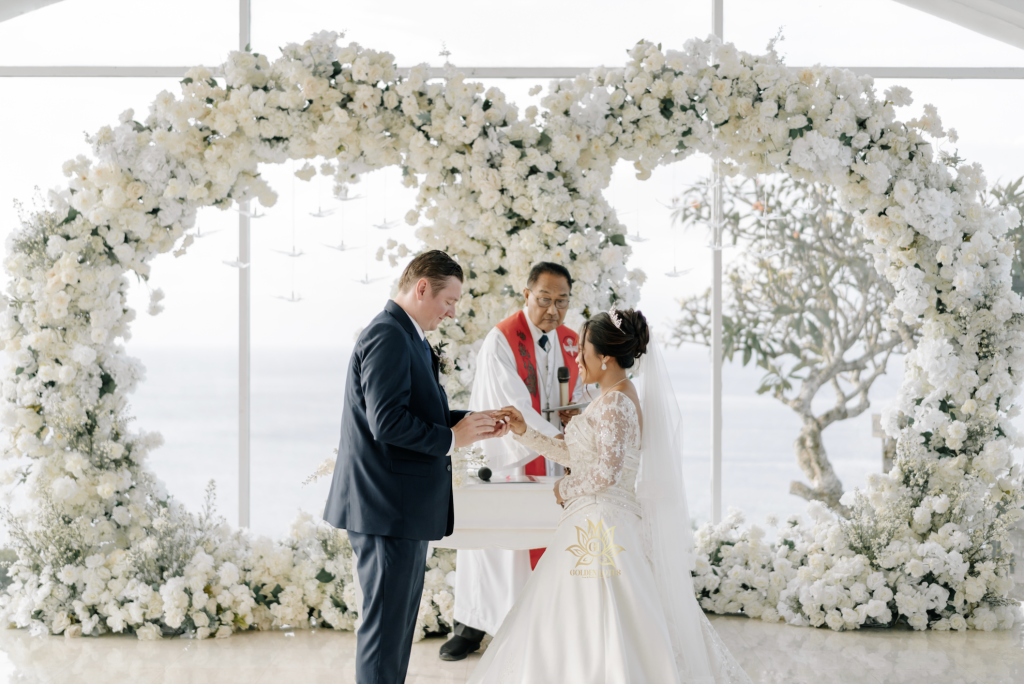 Begitu langkah pertama diambil menuju altar, setiap detik terasa magis. Desiran angin laut membawa aroma garam dan bunga segar, sementara suara lembut gelombang menjadi musik latar alami yang menenangkan hati. Bagi banyak pasangan, inilah momen di mana dunia seakan berhenti berputar — hanya ada mereka berdua dan lautan luas yang menyaksikan cinta mereka.