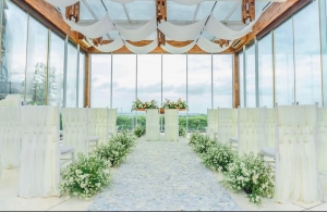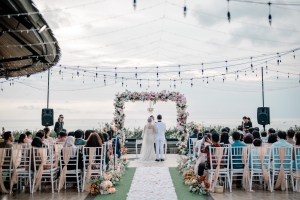 The Chapel Intimate Wedding Standard Package includes legal wedding services, buffet dinner for 100 guests, venue, decoration (upon request), a complimentary 2-night stay for honeymoon, sound system, master of ceremony, wedding dress and suit, makeup and hairstyling, photo and videography services, and full wedding organizer and planner support. Held in an elegant chapel setting, this intimate yet luxurious celebration is offered at IDR 130,000,000. Terms and conditions apply.